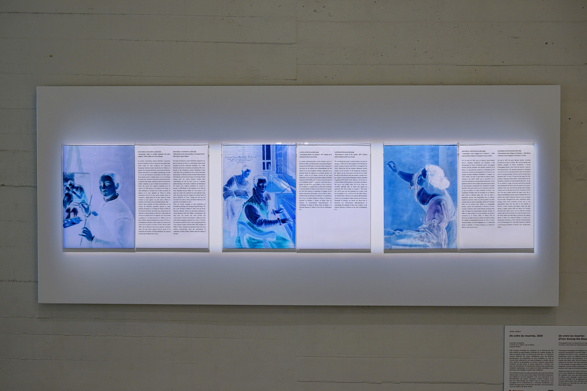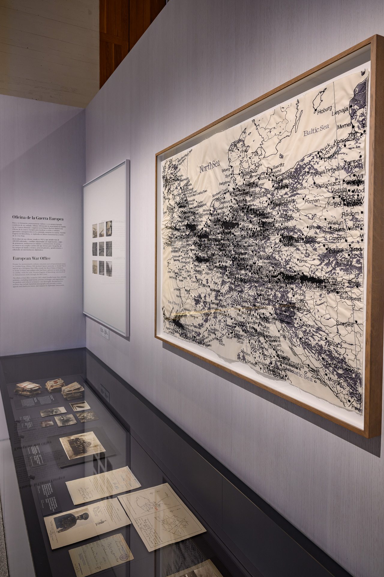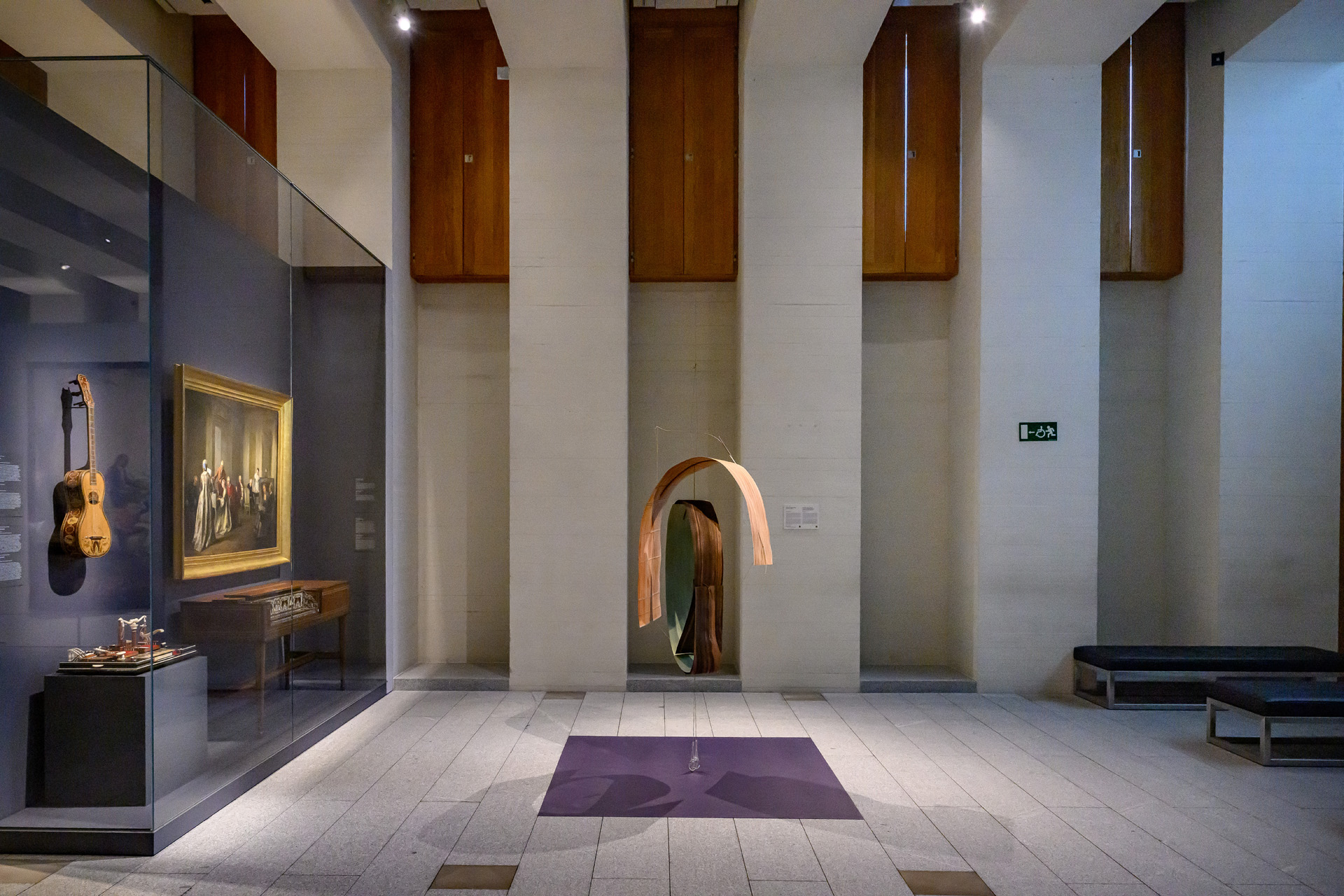 El arte nos lleva a preguntar, cuestionar, reflexionar, ver otros puntos de vista. Este proyecto es una invitación a generar relatos y a relacionarnos de otra manera con las colecciones reales mediante cuatro intervenciones de artistas contemporáneos directamente relacionadas con su historia y su presentación en la exposición permanente: Mateo Maté, con La niña de la espina, 2016, una reinterpretación del célebre Espinario de Guglielmo della Porta, adquirido por Felipe II, a través de los vaciados de la pieza conservados en la Real Academia de Bellas Artes de San Fernando, Diana Larrea, con tres obras de la serie De entre las muertas, 2020, en la que explora la invisibilidad histórica de las mujeres artistas vinculadas a las colecciones reales, Cristina Mejías, con la pieza Recuerdo doble, temblor y vuelco II, 2022, en la que investiga la tradición oral asociada al oficio de luthier, y Cristina Lucas con Europe 1912 – 1945, 2015, que representa los bombardeos sobre la población civil en este periodo convulso recurriendo al bordado, un arte popular para la expresión del duelo y una tarea tradicionalmente asociada al ámbito femenino.