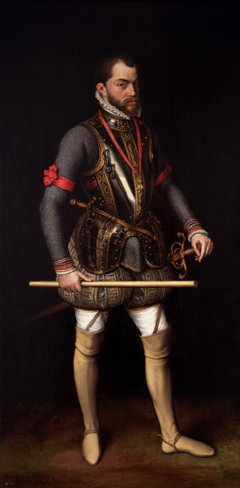 El retrato de Felipe II de Antonio Moro, propiedad del Museo de Bellas Artes de Bilbao desde 1992, es una de las mejores imágenes que representa al joven Felipe como príncipe de la monarquía española. Moro lo pintó durante la estancia del príncipe en Bruselas entre abril de 1549 y mayo de 1550, cuando estaba realizando su “Felicíssimo viaje” a Europa, como así lo tituló Juan Cristóbal Calvete de Estrella en su famosa crónica publicada en Amberes en 1552. Durante dicha jornada su padre Carlos V lo presentó como el heredero de la Casa de Austria en los Estados Generales de Flandes, así como ambos -padre e hijo- tuvieron la oportunidad de protagonizar las importantes entradas triunfales en Bruselas y Amberes en la primavera de 1549, para terminar el periplo en Augsburgo en 1551, donde se celebraría la Dieta Imperial.