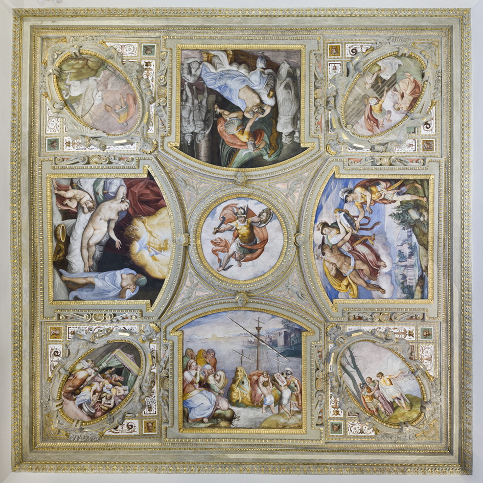 Recién llegado de Roma, en 1562, Gaspar Becerra fue elegido por Felipe II para realizar la decoración en pintura mural de los palacios reales. Su fama como buen fresquista y su lenguaje grandioso de signo miguelangelesco resultaron claves para su elección. Su primer encargo para el rey fueron los frescos del Torreón de la Reina del Palacio Real de El Pardo, cuya importancia artística queda aún hoy más destacada al ser la única pieza existente de aquel rico programa mural de índole clasicista.