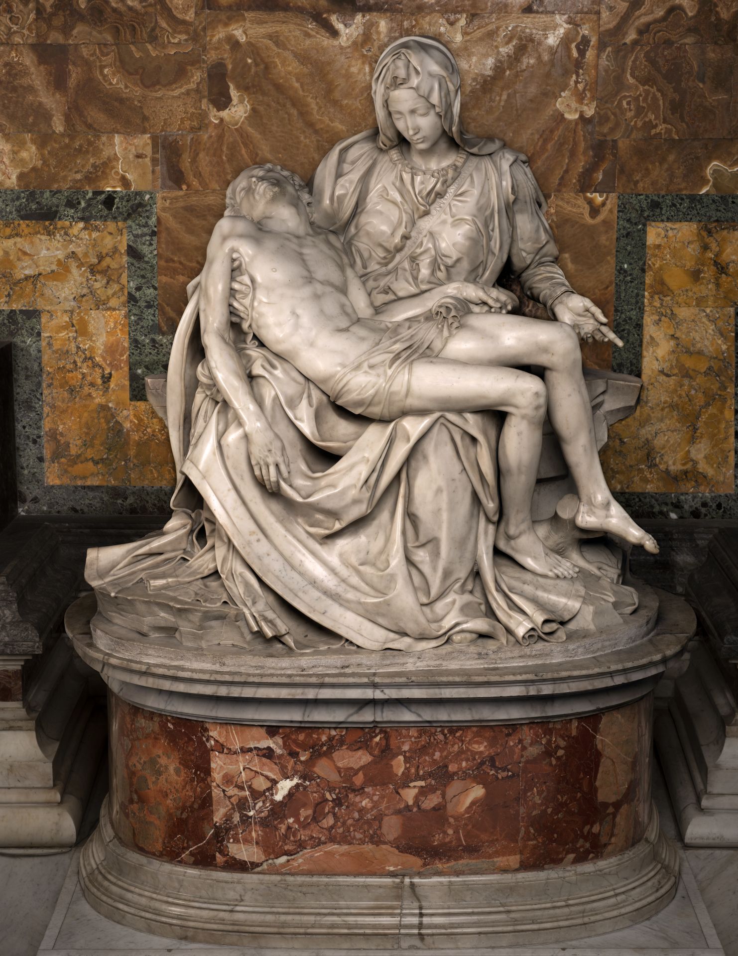 La Piedad de Becerra tiene como referente inmediato la Piedad pintada por Sebastiano del Piombo (h. 1485 – 1547) para la iglesia de San Francesco alla Rocca de Viterbo, obra fechada entre 1513 y 1516. Esta pintura, realizada poco después de la llegada de Sebastiano a Roma, constituye una de las formulaciones más tempranas del nuevo lenguaje romano surgido del diálogo entre el color veneciano y el rigor anatómico de Miguel Ángel (1475 –1564). Vasari menciona la existencia de un cartón preparatorio de Buonarroti y existen varios dibujos previos del toscano para la figura de la Virgen que confirman su papel activo en esta creación.