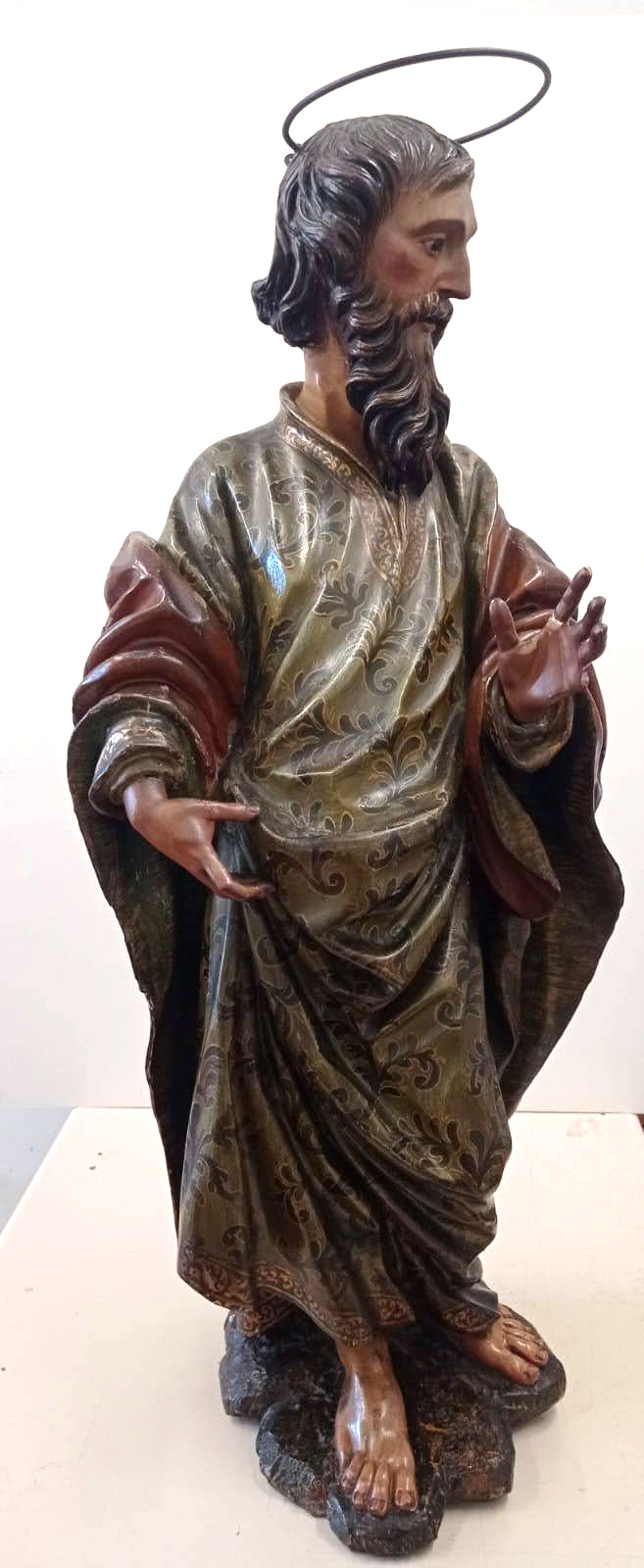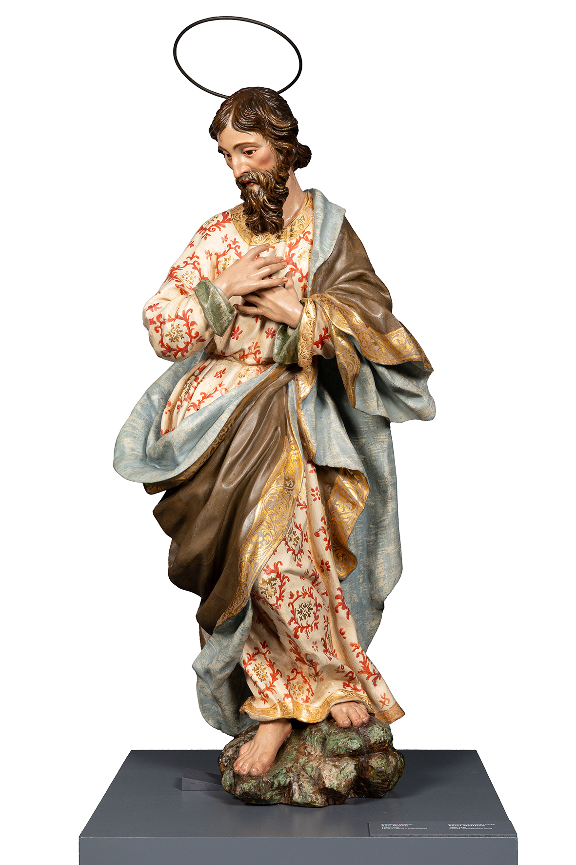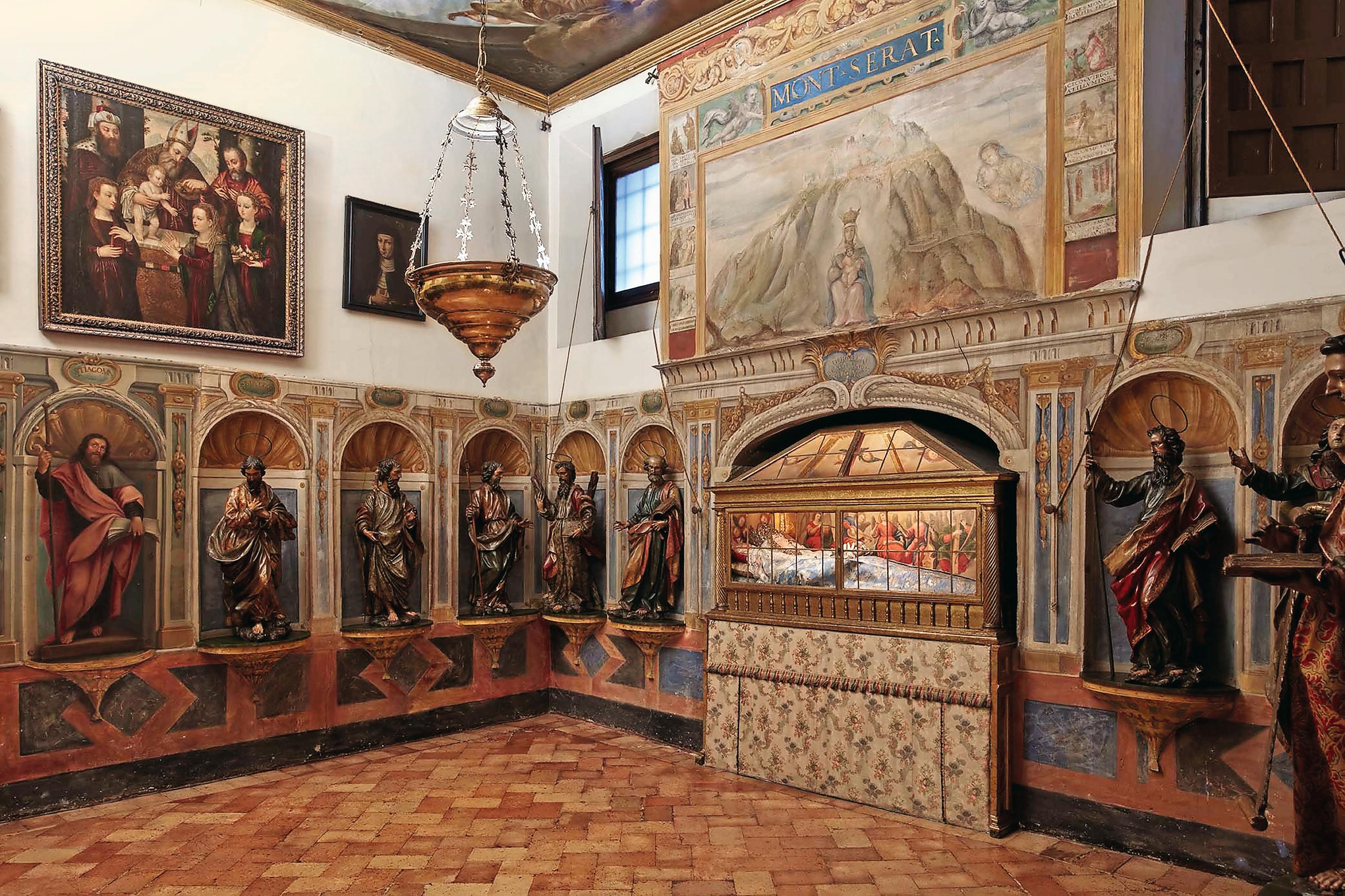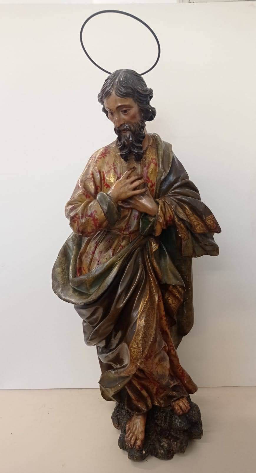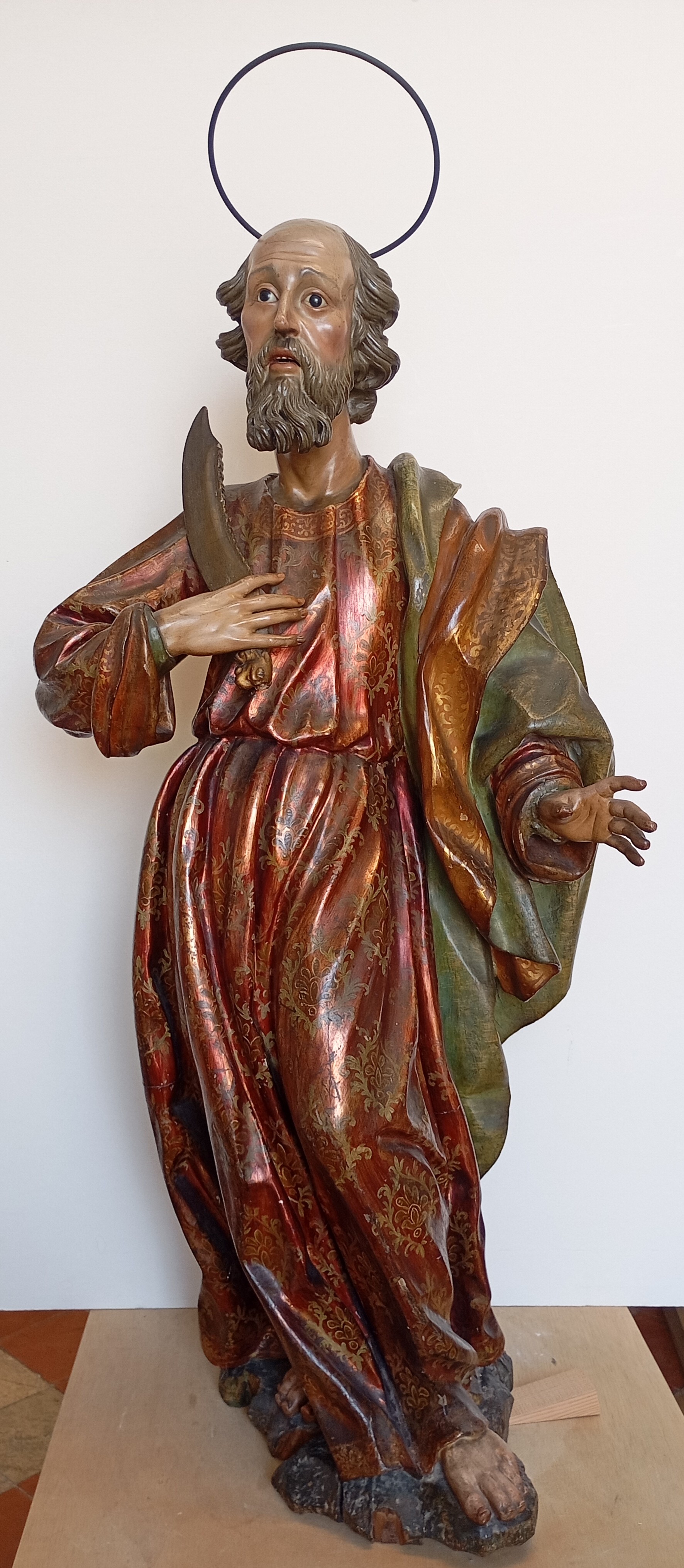 Un ejemplo de este trabajo es el proyecto de restauración integral, actualmente en curso, de la Capilla de la Dormición del Monasterio de las Descalzas Reales, donde se conserva un apostolado que acompaña a la Virgen del Tránsito, recreando la escena descrita en los evangelios apócrifos. Estas esculturas, consideradas obras españolas, posiblemente andaluzas, de finales del siglo XVII o principios del XVIII, han sido objeto de una profunda intervención que ha permitido recuperar su policromía original y el cuidado trabajo de estofado, hasta ahora ocultos bajo una gruesa capa de barniz oxidado y suciedad de carácter orgánico. Gracias a este minucioso proceso, ha sido posible redescubrir la riqueza cromática inicial y la expresividad de los rostros, aspectos que contribuirán a llevar a cabo un estudio más detallado sobre su autoría y procedencia.
